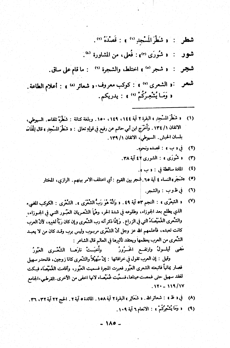 شعر: {الشعرى}: كوكب معروف. {شعائر}: أعلام الطاعة. {وما يشعركم}: يدريكم.