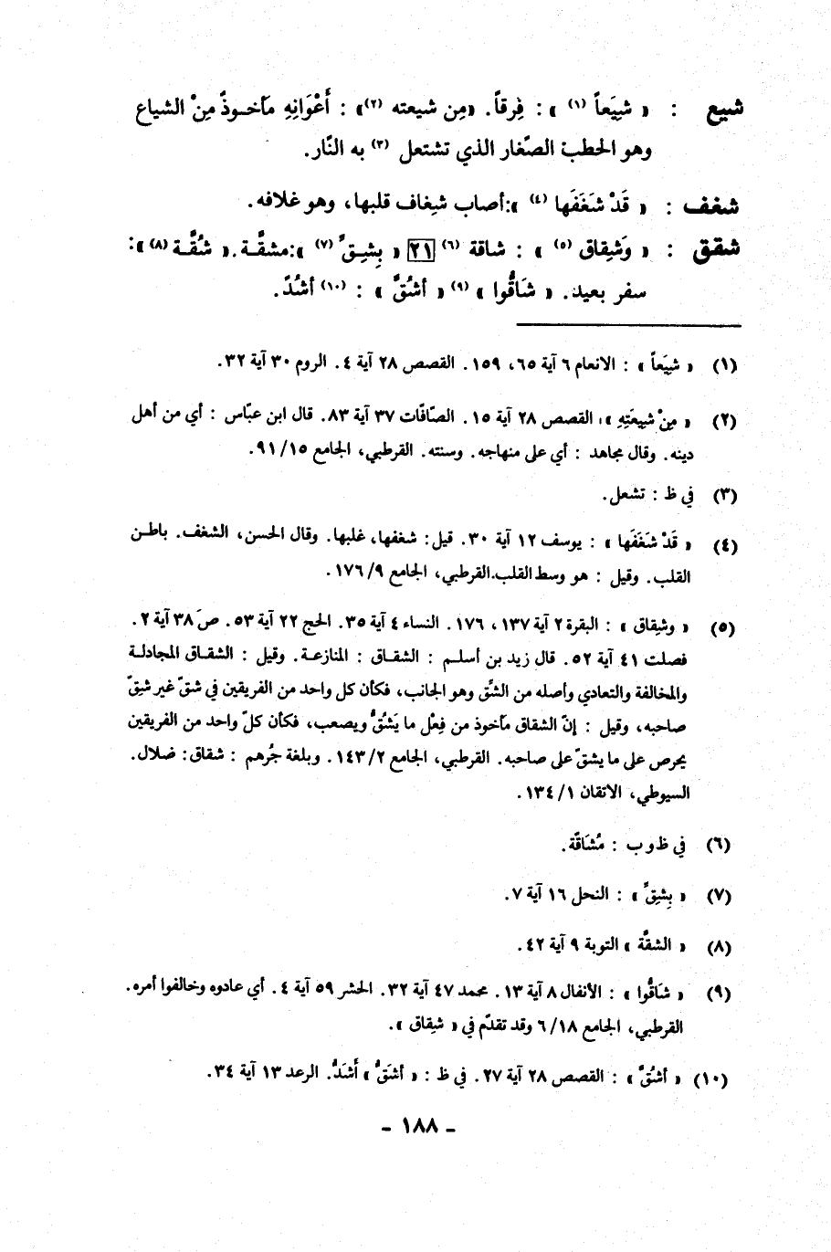 شقق: {وشقاق}: شاقة. {بشق}: مشقة. {شقة}: سفر بعيد. {شاقوا} {أشق}: أشد.