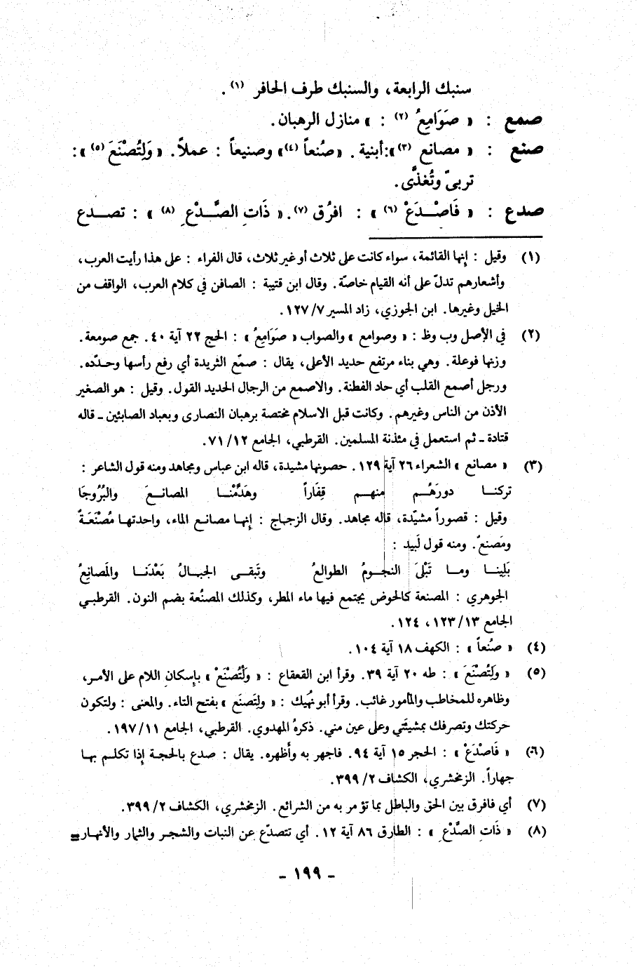 صنع: {مصانع}: أبنية. {صنعا} وصنيعا: عملا. {ولتصنع}: تربى وتغذى.