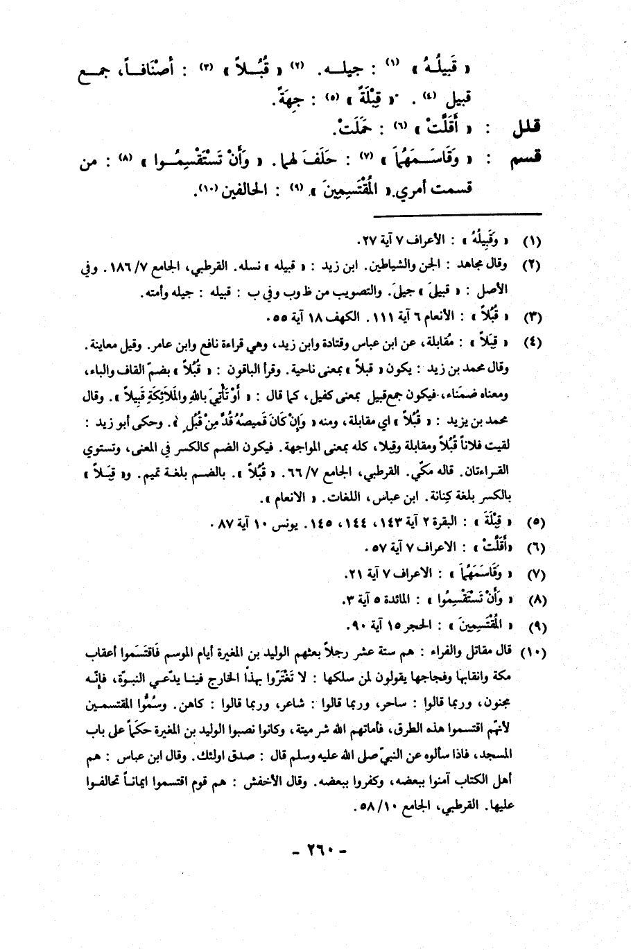 {قبيلُه}: جيله. {قبلا}: أصنافا، جمع قبيل. {قبلة}: جهة.