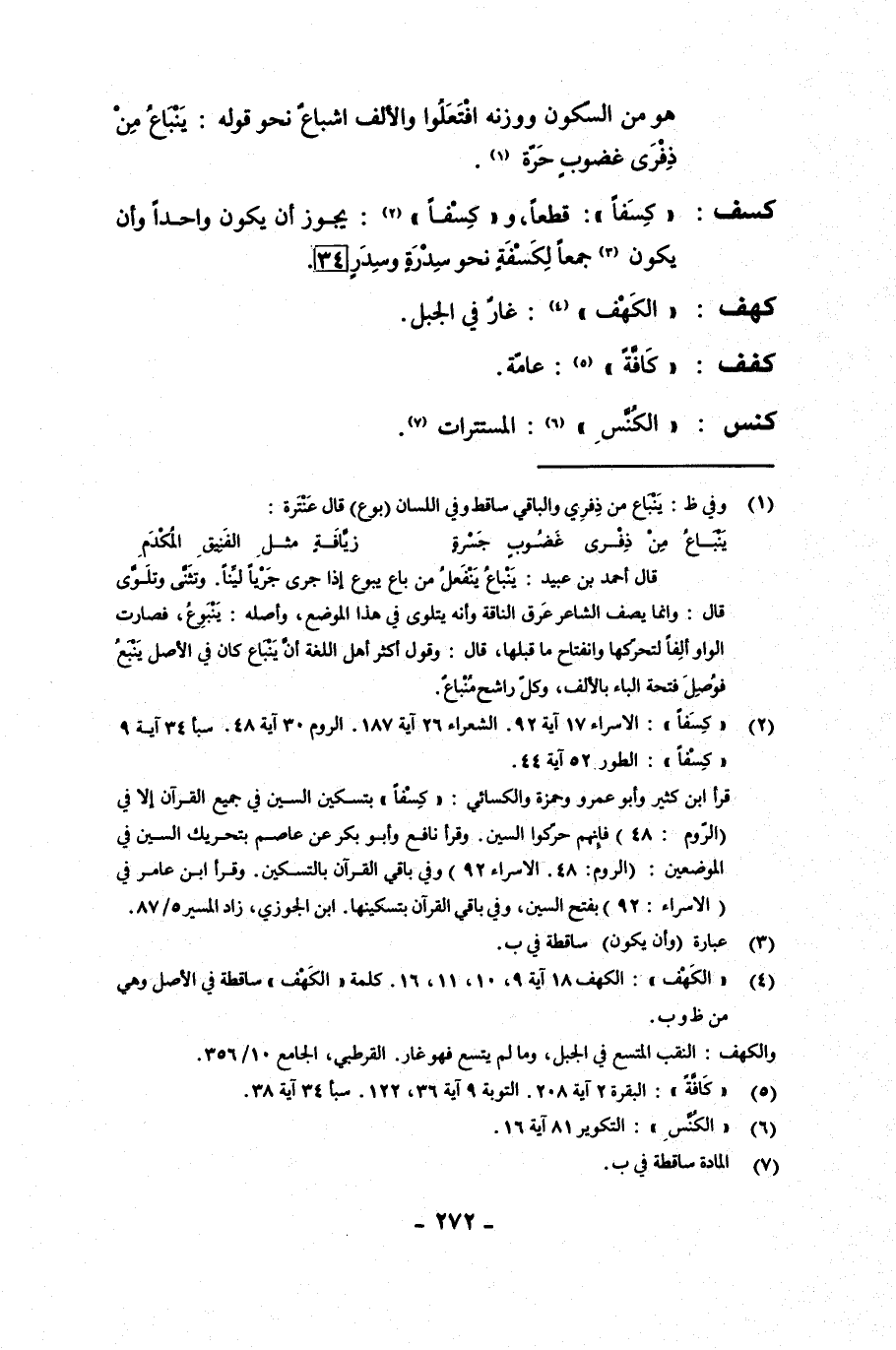 كسف: {كسفا}: قطعا، و {كسفا}: يجوز أن يكون واحدا وأن يكون جمعا لكسفة نحو سدرة وسدر.