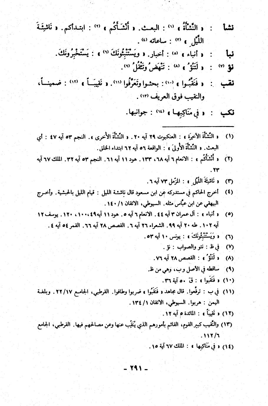 نشأ: {النشأة}: البعث. {أنشأكم}: ابتدأكم. {ناشئة الليل}: ساعاته.