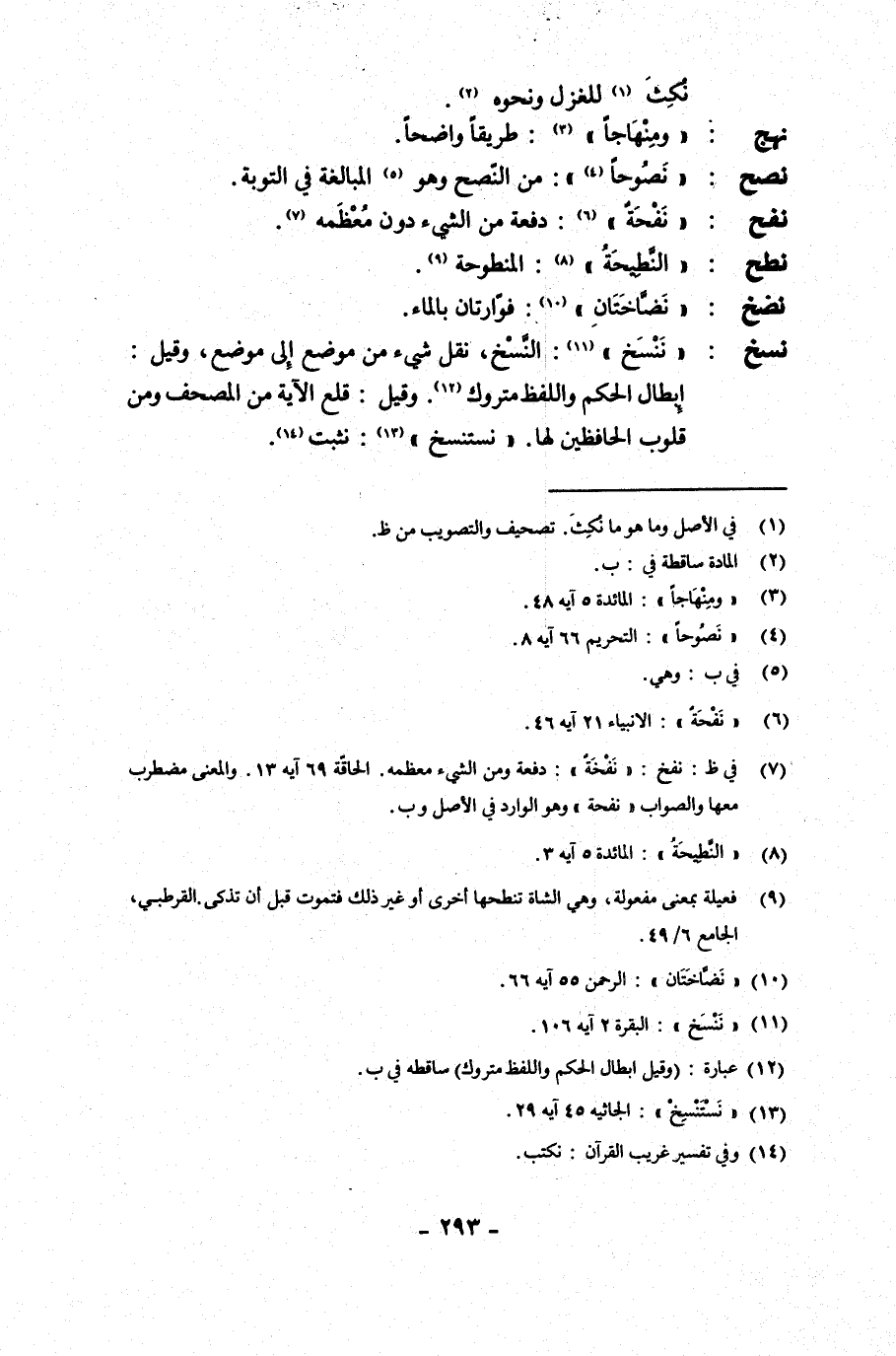 نسخ: {ننسخ}: النسخ نقل شيء من موضع إلى موضع، وقيل: إبطال الحكم واللفظ متروك. وقيل: قلع الآية من المصحف ومن قلوب الحافظين لها. {نستنسخ}: نثبت.