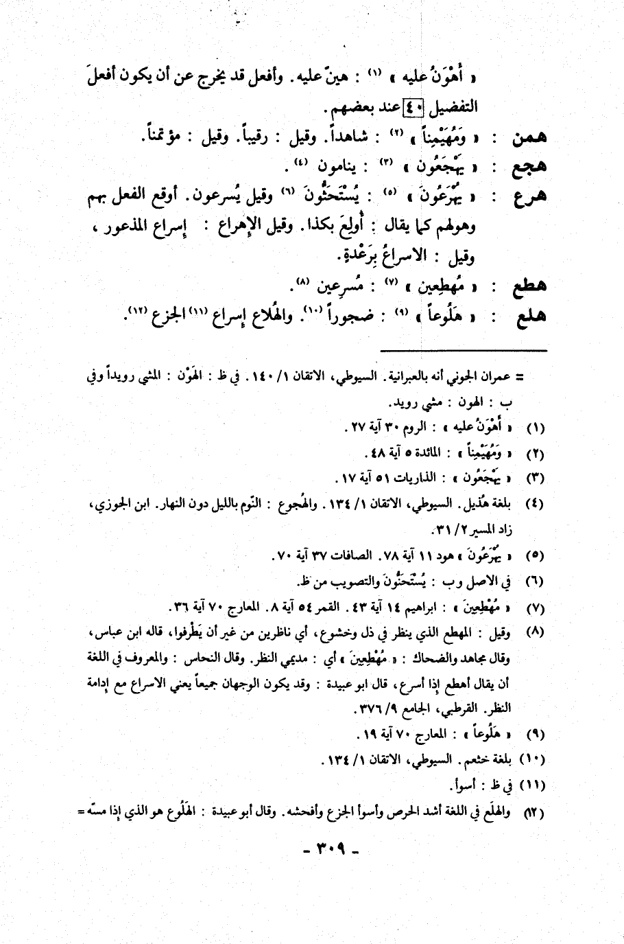 هرع: {يهرعون}: يستحثون وقيل يسرعون. أوقع الفعل بهم وهو لهم كما يقال: أولع بكذا. وقيل: الإهراع: إسراع المذعور، وقيل: الإسراع برعدة.
