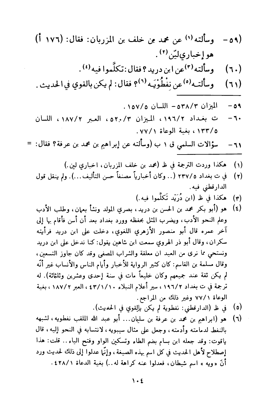 61 - وسألته عن نفطويه فقال لم يكن بالقوي في الحديث