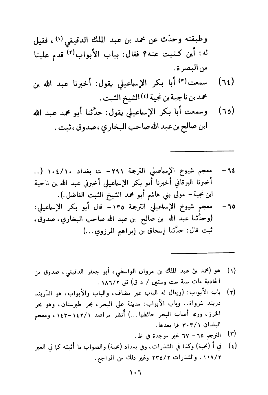 64 - سمعت أبا بكر الإسماعيلي يقول أخبرنا عبد الله بن محمد بن ناجية بن نجية الشيخ الثبت