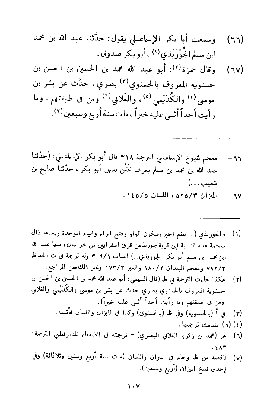 66 - وسمعت أبا بكر الإسماعيلي يقول حدثنا عبد الله بن محمد بن مسلم الجوربذي أبو بكر صدوق