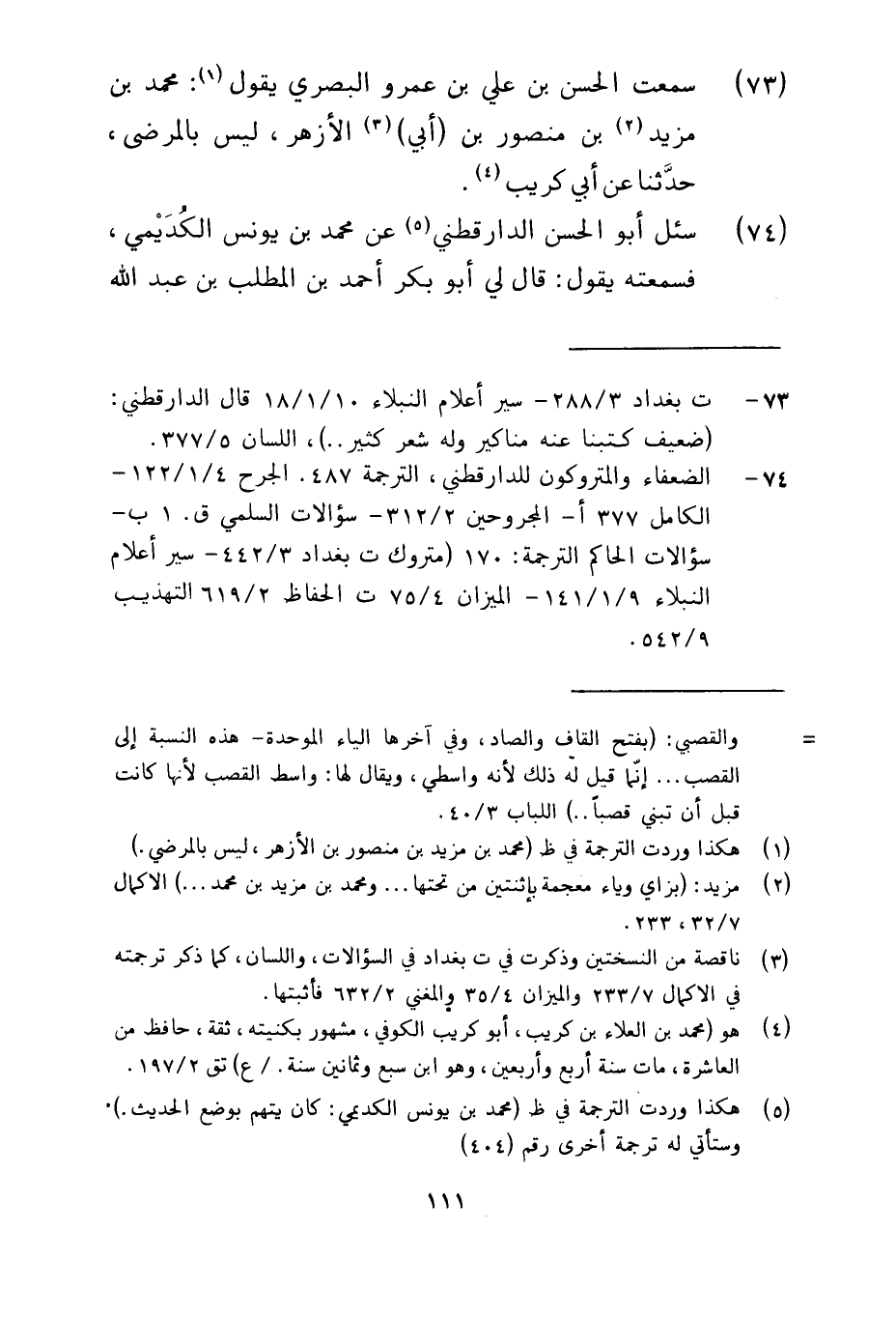 73 - سمعت الحسن بن علي بن عمرو البصري يقول محمد بن مزيد بن منصور بن أبي الأزهر ليس بالمرضى حدثنا عبن أبي كريب