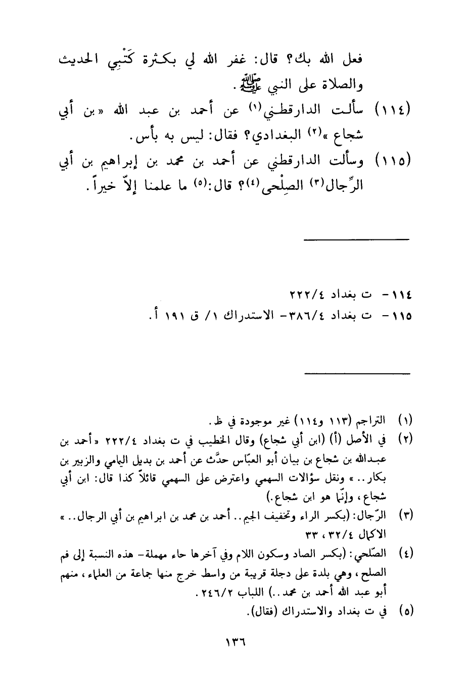 115 - وسألت الدارقطني عن أحمد بن محمد بن إبراهيم بنأبي الرجال الصلحي قال ما علمنا إلا خيرا
