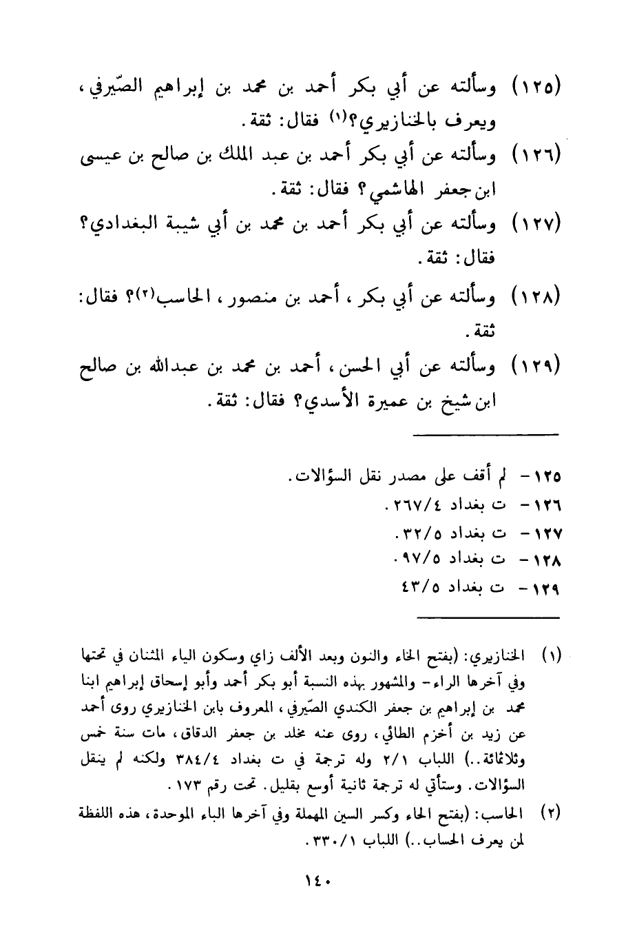 127 - وسألته عن أبي بكر أحمد بن محمد بن أبي شيبة البغدادي فقال ثقة