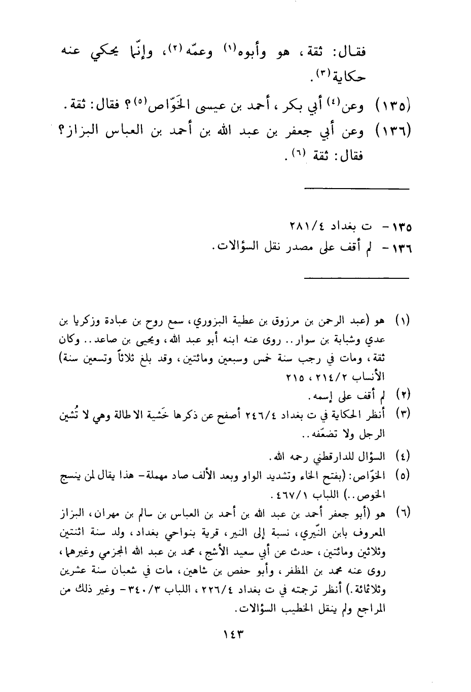 136 - وعن أبي جعفر بن عبد الله بن أحمد بن العباس البزاز فقال ثقة