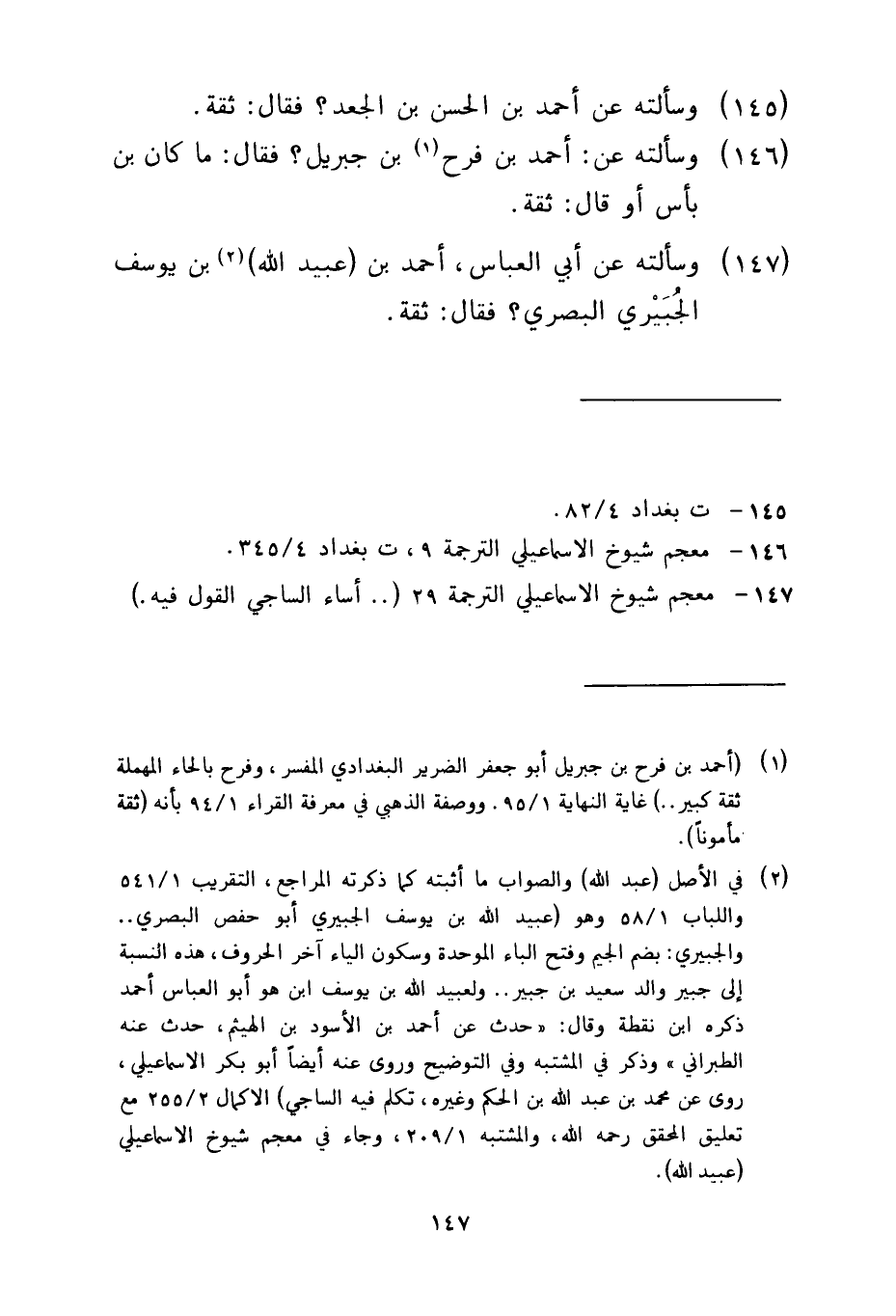 147 - وسألته عن أبي العباس أحمد بن عبيد الله بن يوسف الجبيري البصري فقال ثقة