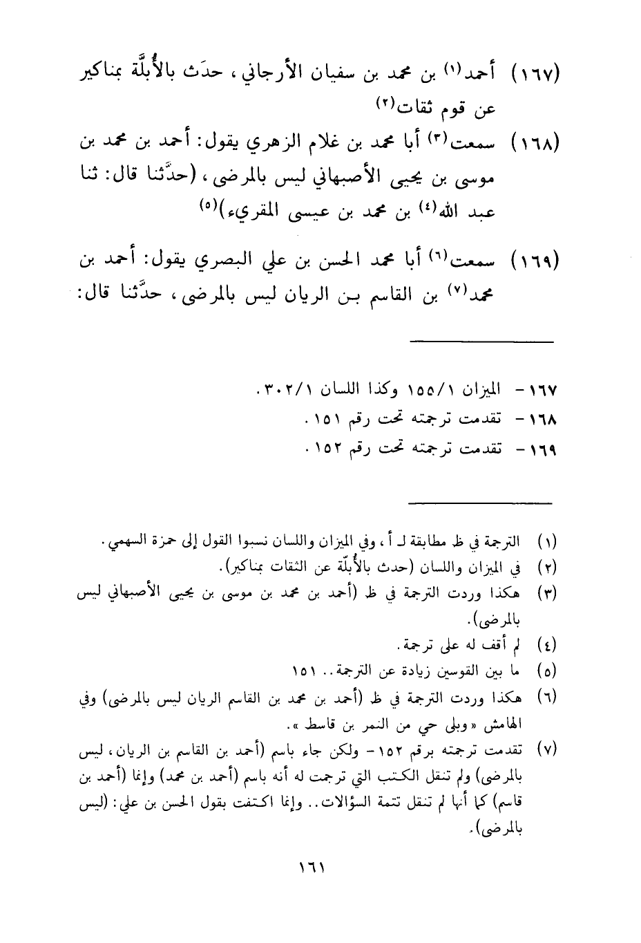 167 - أحمد بن محمد بن سفيان الأرجاني حدث بالأبلة بمناكير عن قوم ثقات