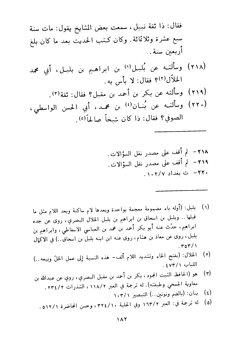 220 - وسألته عن بنان بن محمد أبي الحسن الواسطي الصوفي فقال ذا كان شيخا صالحا