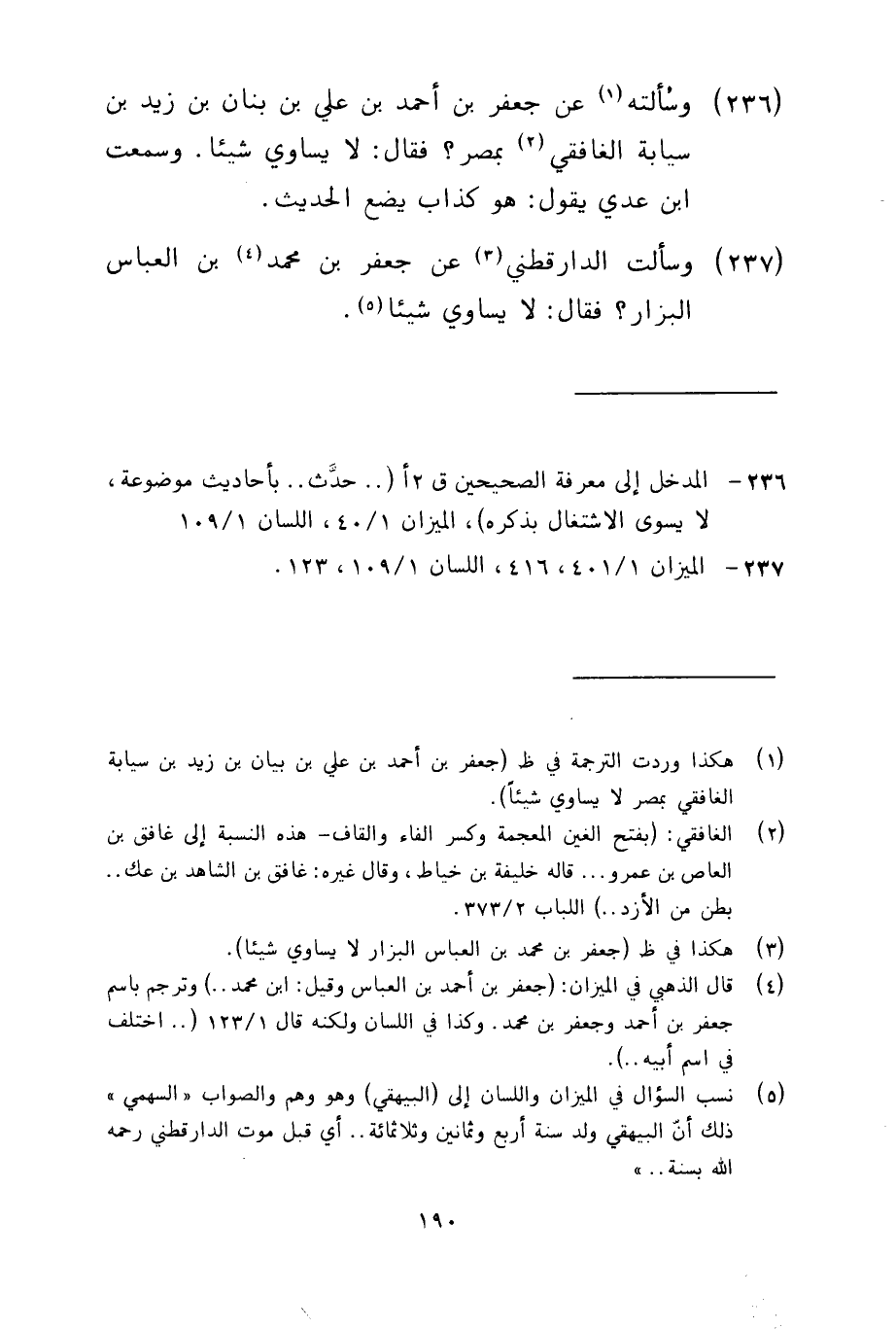 237 - وسألت الدارقطني عن جعفر بن محمد بن العباس البزار فقال لا يساوي شيئا