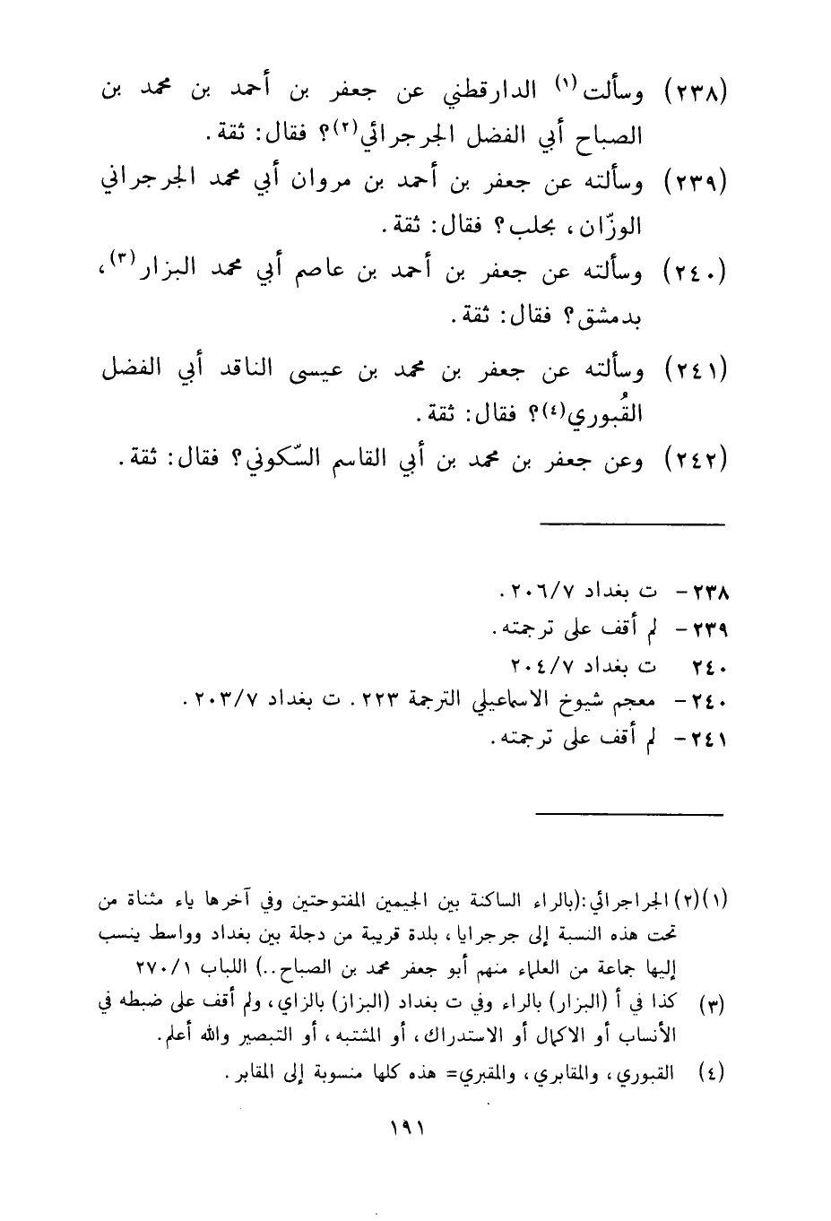 238 - وسألت الدارقطني عن جعفر بن أحمد بن محمد بن الصباح أبي الفضل الجرجرائي فقال ثقة