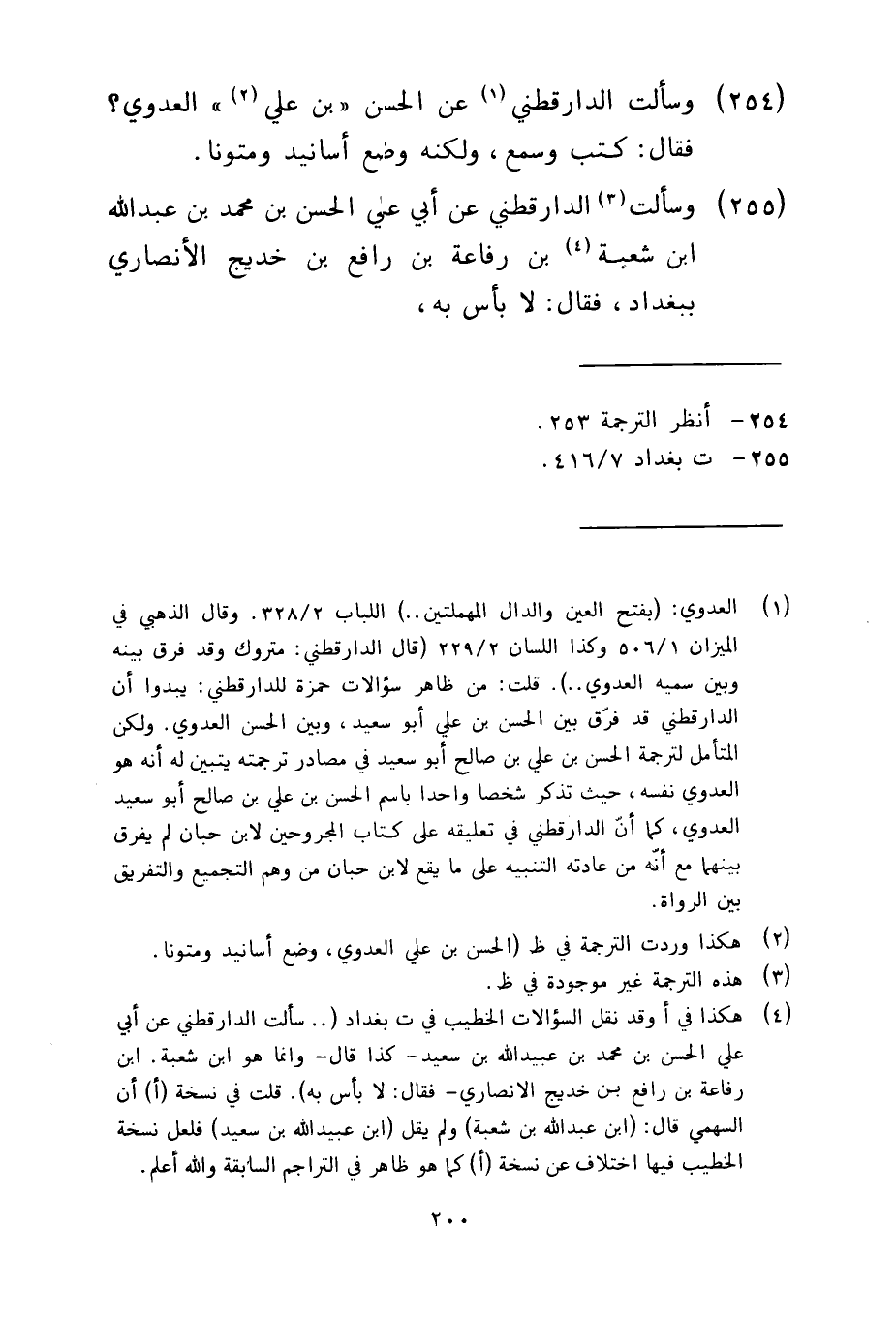 254 - وسألت الدارقطني عن الحسن بن علي العدوي فقال كتب وسمع ولكنه وضع أسانيد ومتونا