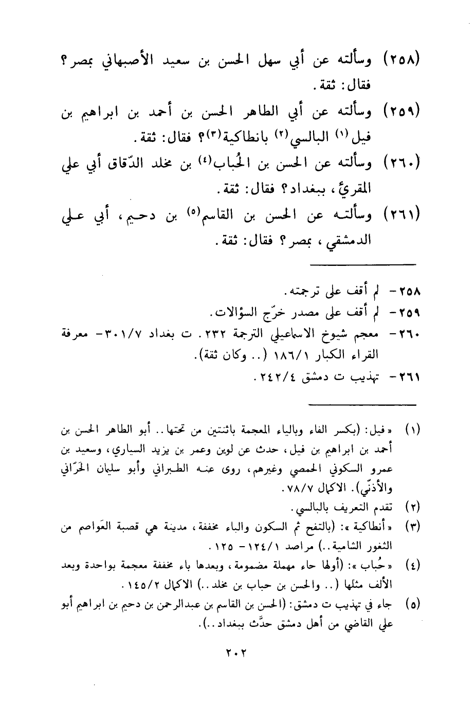 259 - وسألته عن أبي الطاهر الحسن بن أحمد بن إبراهيم بن فيل البالسي بأنطاكية فقال ثقة