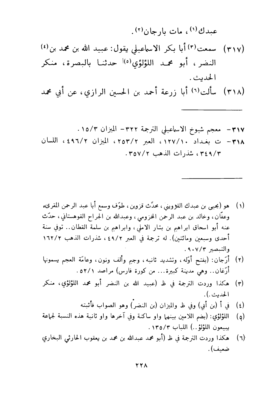 317 - سمعت أبا بكر الإسماعيلي يقول عبيد الله بن محمد بن النضر أبو محمد اللؤلؤي حدثنا بالبصرة منكر الحديث