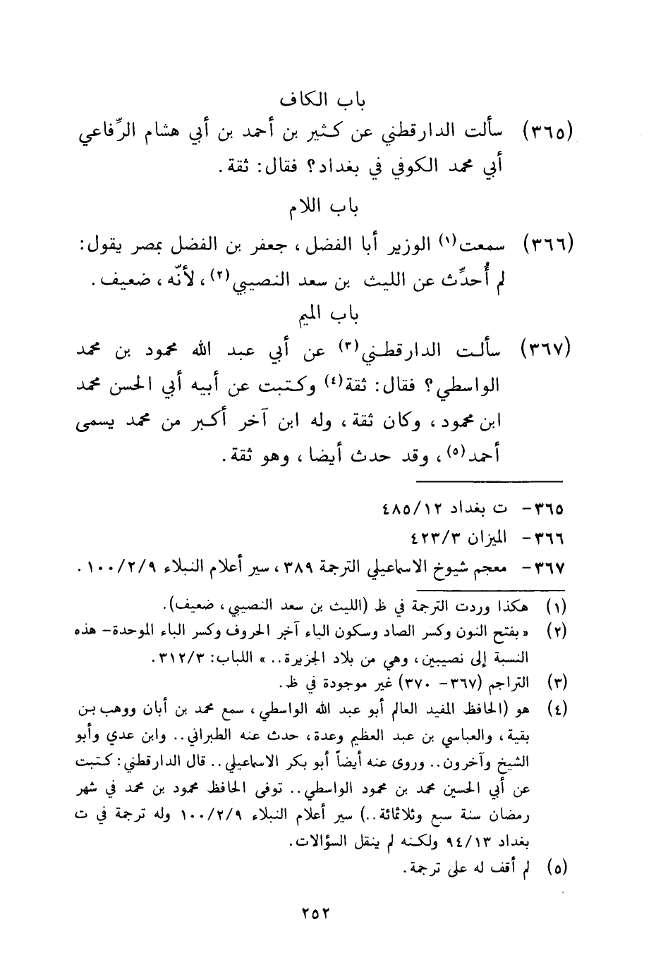 365 - سألت الدارقطني عن كثير بن أحمد بن أبي هشام الرفاعي أبي محمد الكوفي في بغداد فقال ثقة