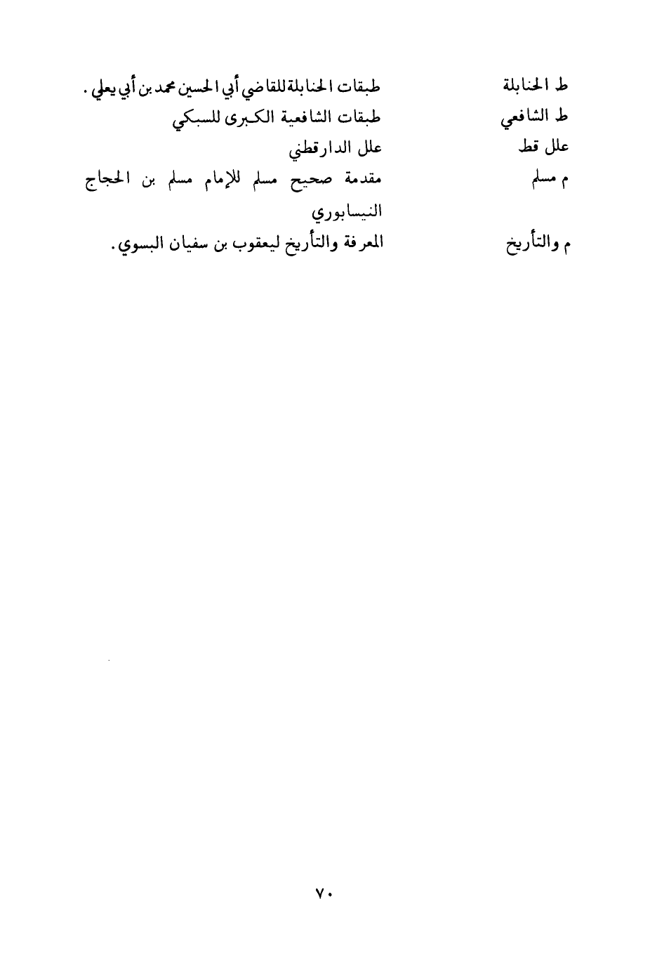 ط الشافعي طبقات الشافعية الكبرى للسبكي علل قط علل الدارقطني م مسلم مقدمة صحيح مسلم للامام مسلم بن الحجاج النيسابوري م والتاريخ المعرفة والتاريخ ليعقوب بن سفيان البسوي.