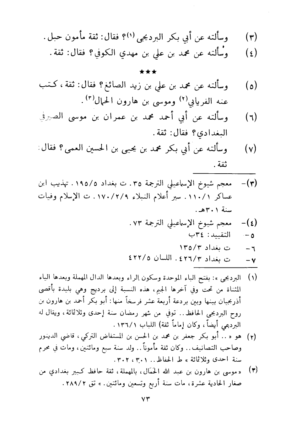 3 - وسألته عن أبي بكر البرديجي فقال ثقة مأمون جبل