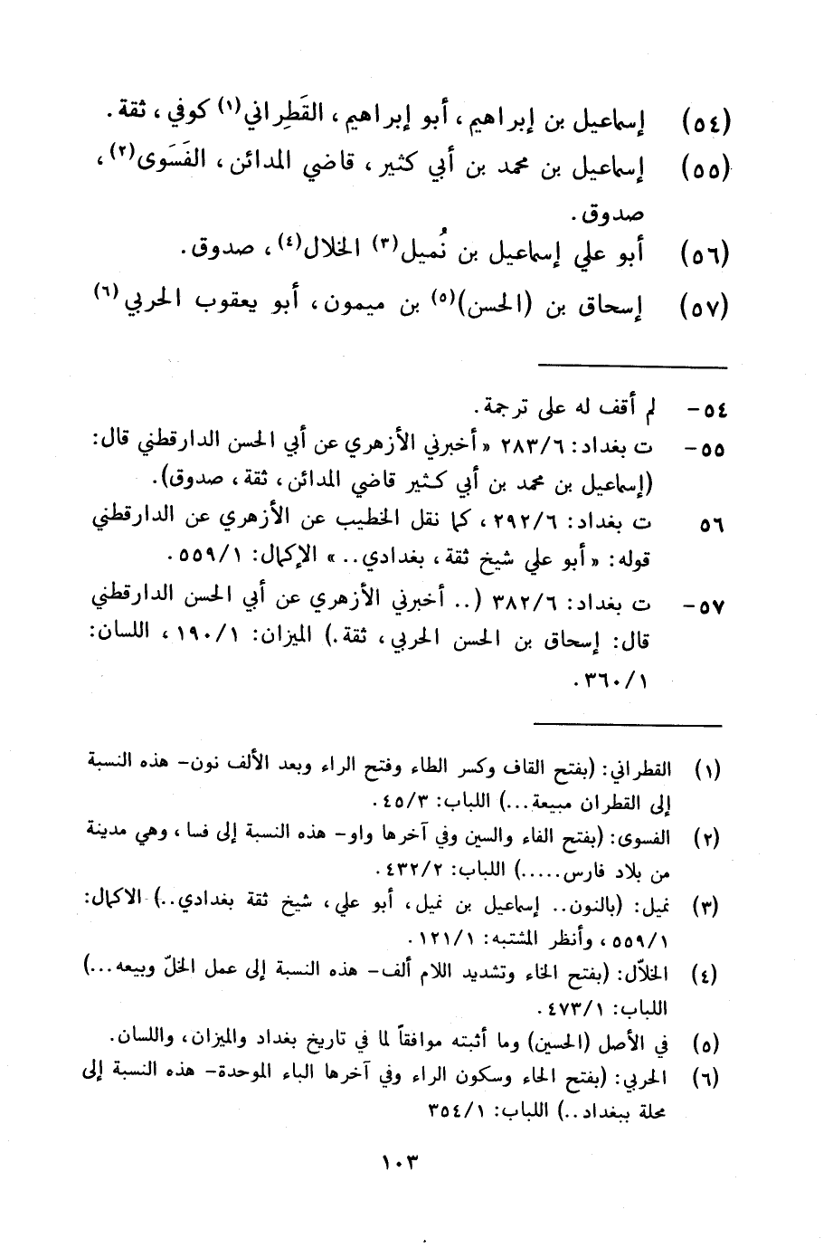 57 - إِسْحَاق بن الْحسن بن مَيْمُون أَبُو يَعْقُوب الْحَرْبِيّ اخْتلف فِيهِ أَصْحَابنَا وَأثْنى عَلَيْهِ إِبْرَاهِيم الْحَرْبِيّ وَهُوَ عِنْدِي ثِقَة قَالَ الْحَاكِم وَقَالَ لي أَبُو بكر الشَّافِعِي سُئِلَ إِبْرَاهِيم الْحَرْبِيّ عَنهُ فَقَالَ مَا زلنا نعرفه بِالطَّلَبِ وَهُوَ يَنْبَغِي أَن يسئل عَنَّا أَو كَمَا قَالَ