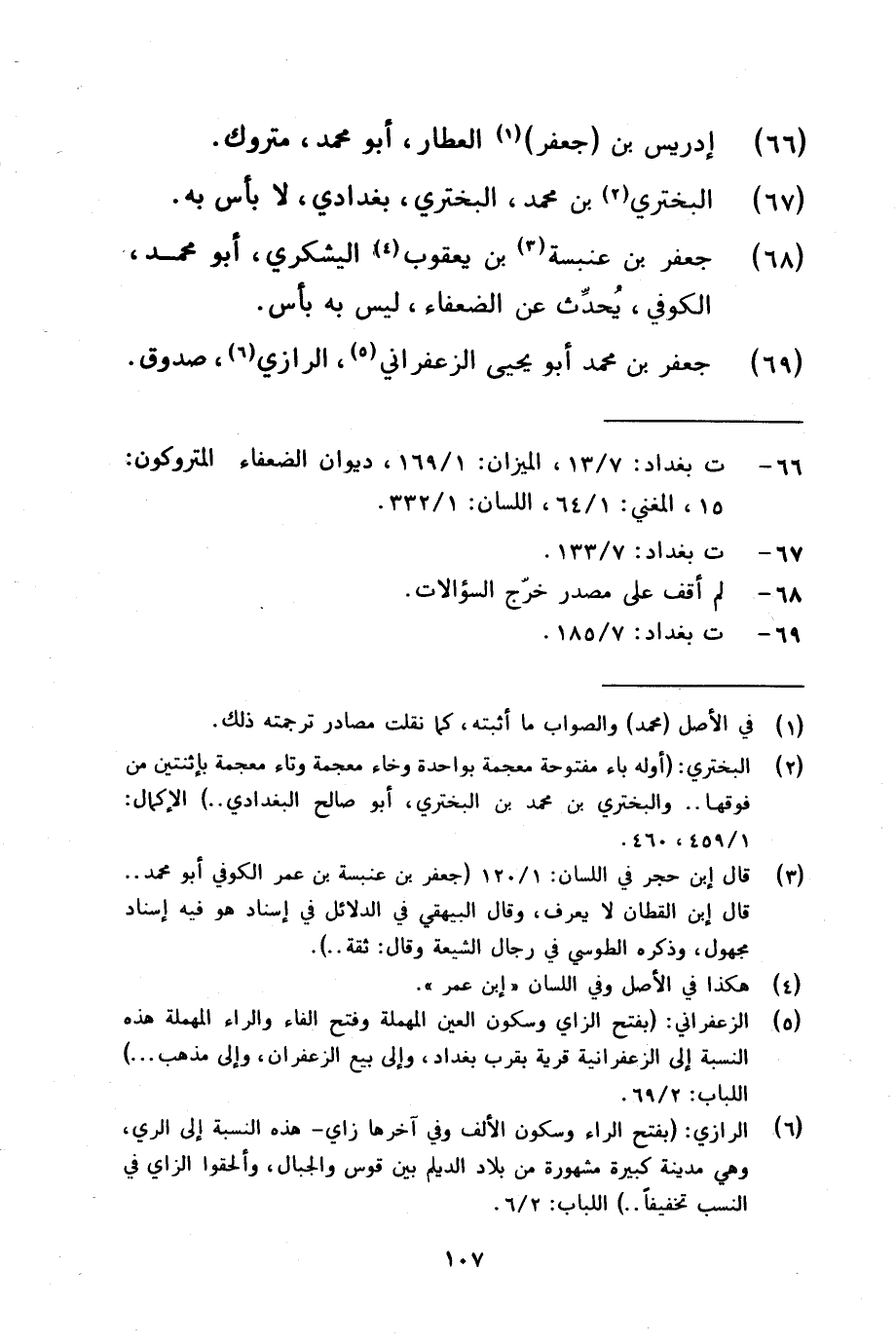 69 - جَعْفَر بن مُحَمَّد أَبُو يحيى الزَّعْفَرَانِي الرَّازِيّ صَدُوق
