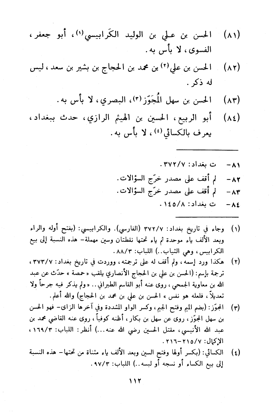 84 - أَبُو الرّبيع الْحُسَيْن بن الْهَيْثَم الرَّازِيّ حدث بِبَغْدَاد يعرف بالكسائي لَا بَأْس بِهِ