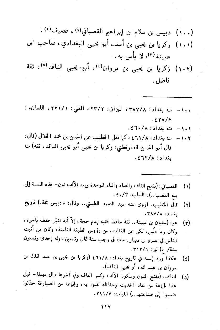 102 - زَكَرِيَّا بن يحيى بن مَرْوَان أَبُو يحيى النَّاقِد ثِقَة فَاضل