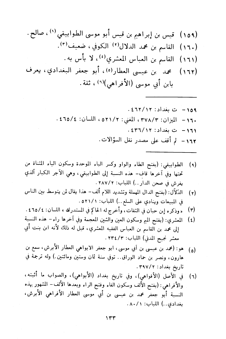 162 - مُحَمَّد بن عِيسَى الْعَطَّار أَبُو جَعْفَر الْبَغْدَادِيّ يعرف بِابْن أبي مُوسَى الأفراهي ثِقَة