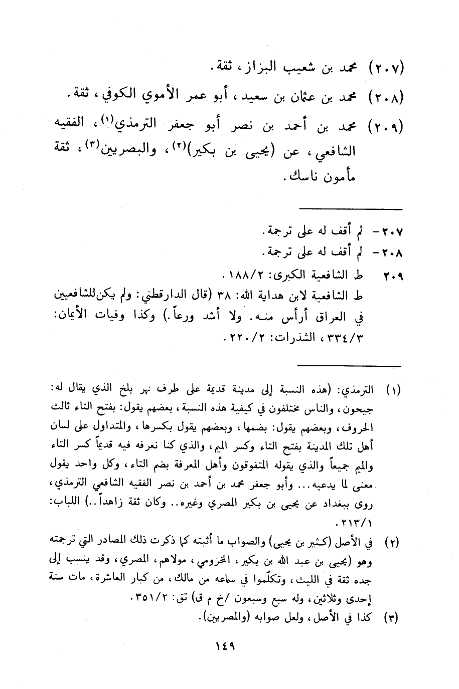 209 - مُحَمَّد بن أَحْمد بن نصر أَبُو جَعْفَر التِّرْمِذِيّ الْفَقِيه الشَّافِعِي عَن يحيى بن بكير والبصريين ثِقَة مَأْمُون ناسك