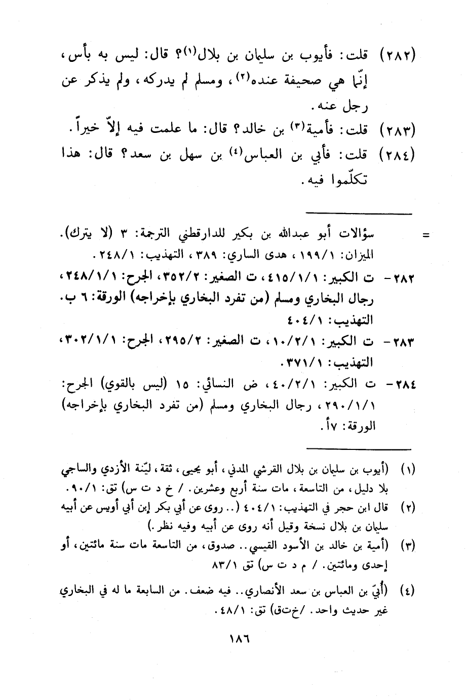 282 - قلت فأيوب بن سُلَيْمَان بن بِلَال قَالَ لَيْسَ بِهِ بَأْس إِنَّمَا هِيَ صحيفَة عِنْده وَمُسلم لم يُدْرِكهُ وَلم يذكر عَن رجل عَنهُ