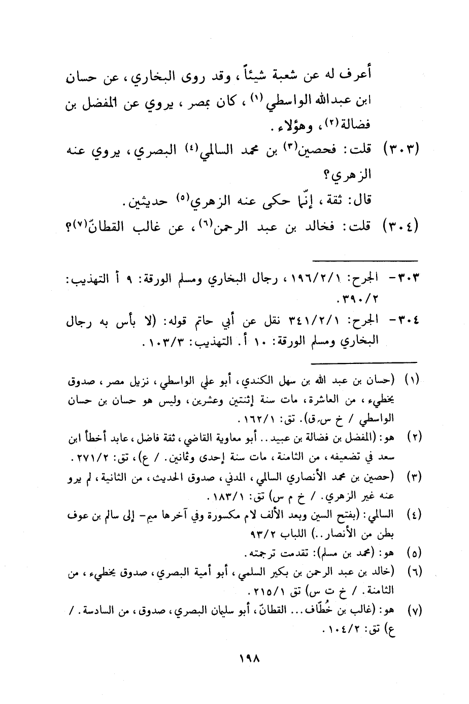 303 - قلت فحصين بن مُحَمَّد السالمي الْبَصْرِيّ يروي عَنهُ الزُّهْرِيّ قَالَ ثِقَة إِنَّمَا حكى عَنهُ الزُّهْرِيّ حديثين