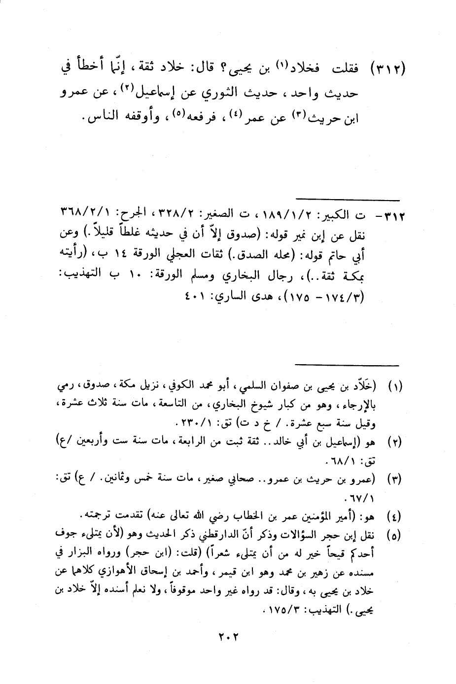 312 - فَقلت فخلاد بن يحيى قَالَ خَلاد ثِقَة إِنَّمَا أَخطَأ فِي حَدِيث وَاحِد حَدِيث الثَّوْريّ عَن إِسْمَاعِيل عَن عَمْرو بن حُرَيْث عَن عمر فرفعه وَأَوْقفهُ النَّاس