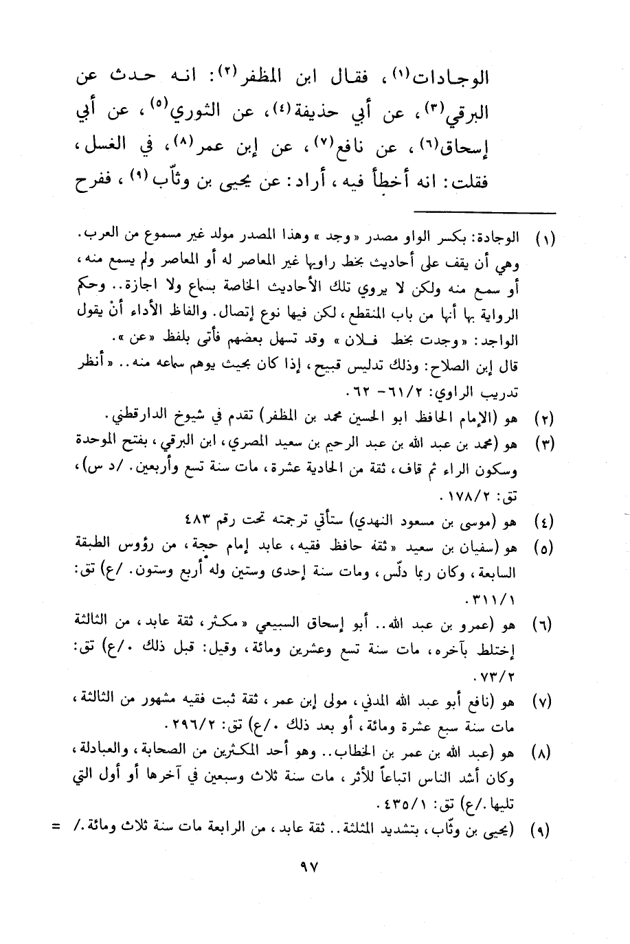 الوجادات فَقَالَ بن المظفر انه حدث عَن البرقي عَن أبي حُذَيْفَة عَن الثَّوْريّ عَن أبي إِسْحَاق عَن نَافِع عَن بن عمر فِي الْغسْل فَقلت انه أَخطَأ فِيهِ أَرَادَ عَن يحيى بن وثاب ففرح أَبُو الْحسن بِقَوْلِي فَزَاد بن المظفر فِيهِ قلت دَعْنَا مَا يتهم مثل أبي الْعَبَّاس بِالْوَضْعِ إِلَّا طبل فَسكت فَلم يجر لهَذَا جَوَابا ثمَّ عاودته فَقَالَ وَالله مَا أَدْرِي مَا أَقُول فِي شَيخنَا غير أَنِّي أشهد أَن من اتهمه بِالْوَضْعِ فقد كذب وَذكر أَحْمد بن مَنْصُور الشِّيرَازِيّ فَقَالَ يتَقرَّب إِلَيّ بكتب يَكْتُبهَا وَقد أَدخل بِمصْر وَأَنا بهَا أَحَادِيث على جمَاعَة من الشُّيُوخ