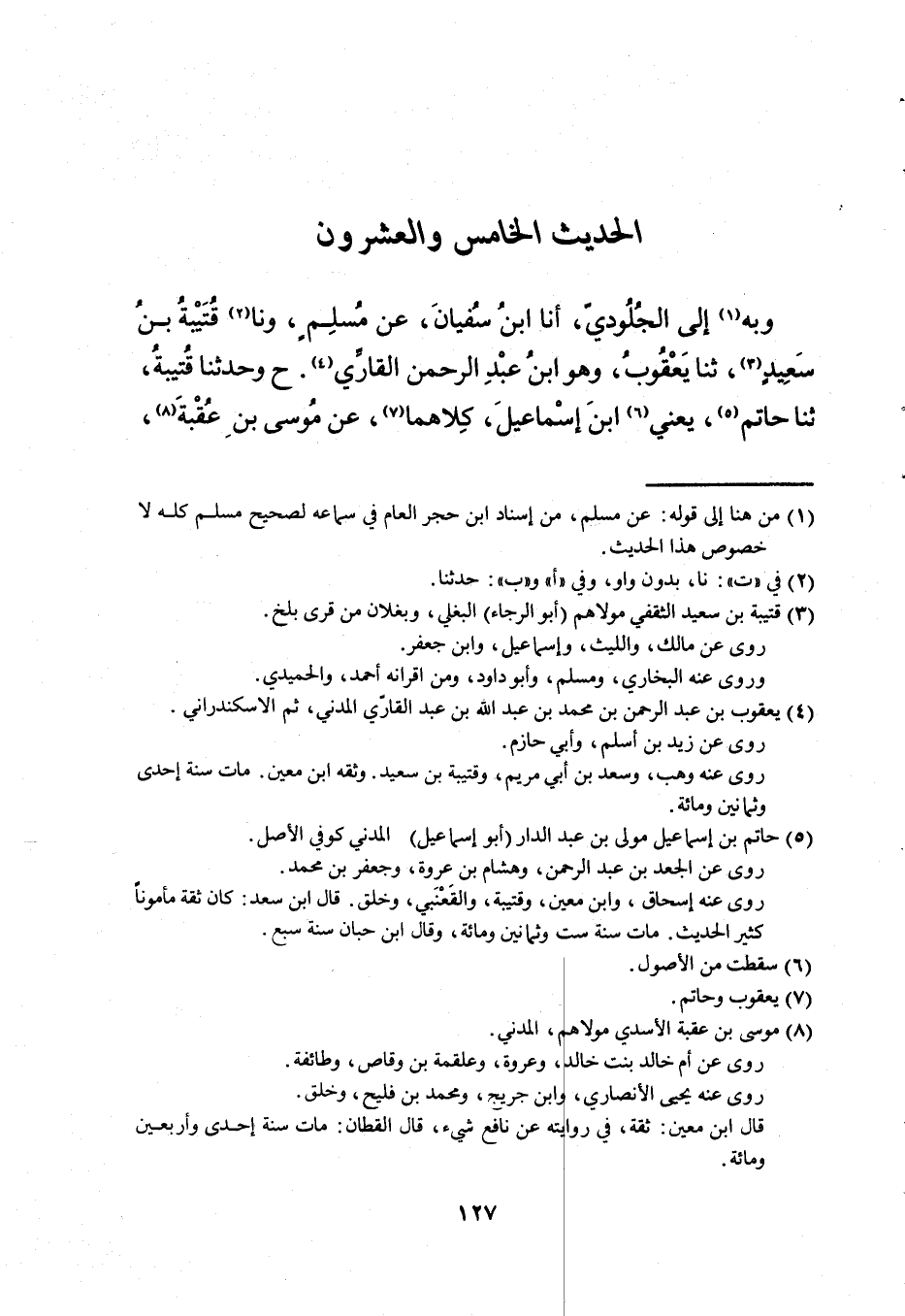 25- وبه إلى الجلودي، أنا ابن سفيان، عن مسلمٍ، ونا قتيبة بن سعيدٍ، ثنا يعقوب، وهو ابن عبد الرحمن القاري. ح، وحدثنا قتيبة، ثنا حاتم، يعني ابن إسماعيل، كلاهما، عن موسى بن عقبة، -[128]- عن نافع، عن ابن عمر -رضي الله تعالى عنهما- أن رسول الله - صلى الله عليه وسلم - حلق رأسه في حجة الوداع.