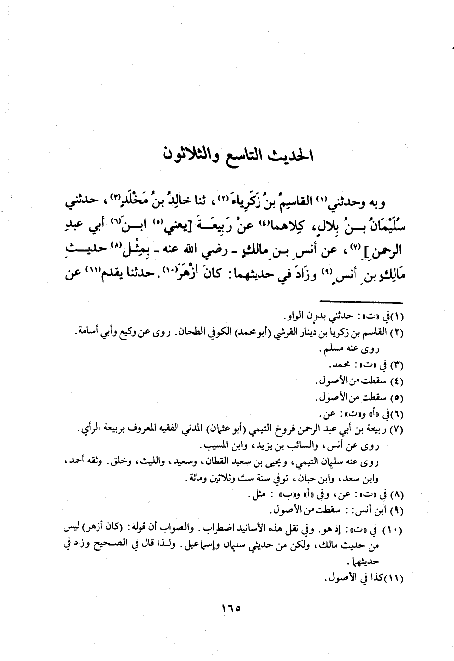 39- وبه وحدثني القاسم بن زكرياء، ثنا خالد بن مخلدٍ، حدثني سليمان بن بلالٍ، كلاهما عن ربيعة [يعني ابن أبي عبد الرحمن] ، عن أنس بن مالكٍ -رضي الله عنه- بمثل حديث مالك بن أنس وزاد في حديثهما: كان أزهر. حدثنا يقدم (¬1) عن -[166]- أنس أنه سمعه يقول: كان رسول الله صلى الله عليه وسلم ليس بالطويل البائن ولا بالقصير، وليس بالأبيض الأمهق، ولا بالآدم، ولا بالجعد القطط ولا بالسبط، بعثه الله على رأس أربعين سنةً، فأقام بمكة عشر سنين وبالمدينة عشر سنين وتوفاه الله على رأس ستين سنة، وليس في رأسه ولحيته عشرون شعرة بيضاء.