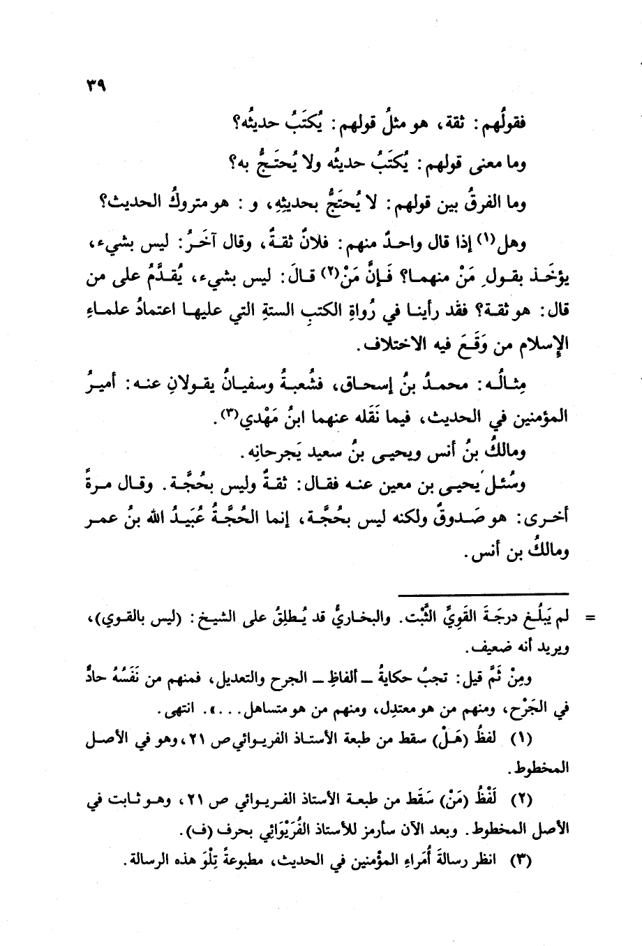 (3) انظر رسالة أمراء المؤمنين في الحديث، مطبوعة تلو هذه الرسالة.