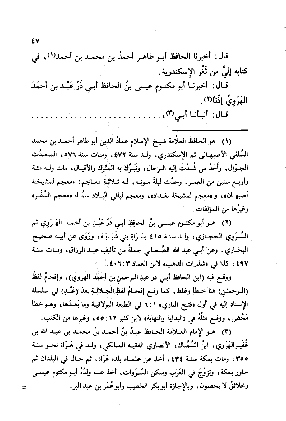 (2) هو أبو مكتوم عيسى بن الحاقظ أبي ذر عبد بن أحمد الهروي ثم