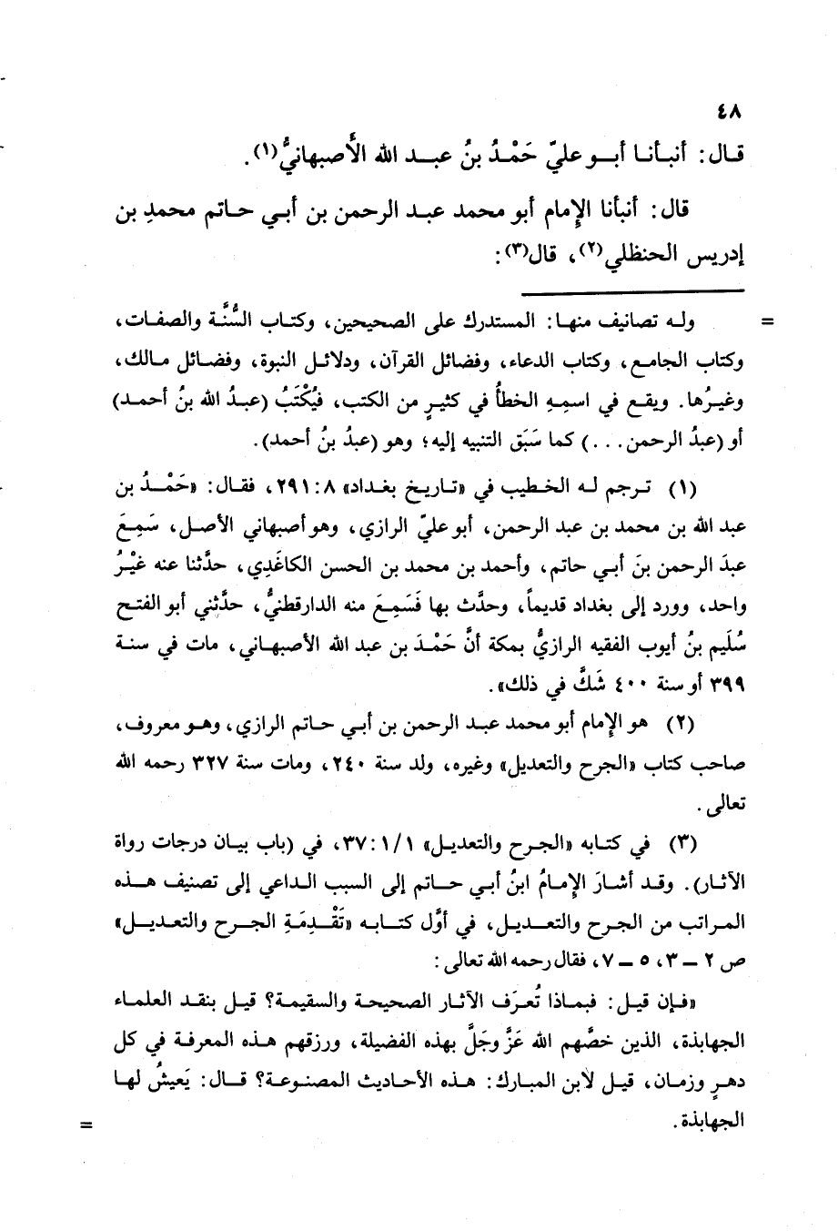 (2) هو الإمام أبو محمد عبد الرحمن بن أبي حاتم الرازي، وهو معروف،
