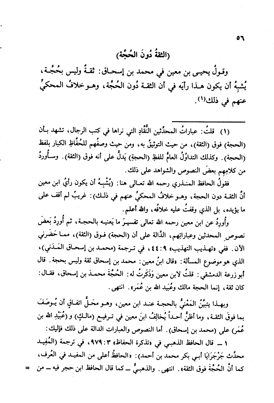 وبهذا يتبين المعنى بالحجة عند ابن معين، وهومحل اتفاق أن يوصف