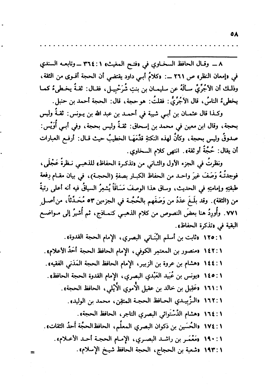 من (الثقة) . وقد بلغ عدد من وصفهم بالحجة في الجزءين 53 محدثا، من أصل
