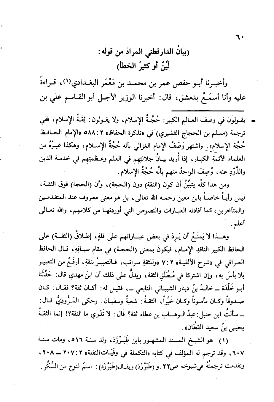 والذود عنه، وصف الواحد منهم بانه حجة الإسلام.