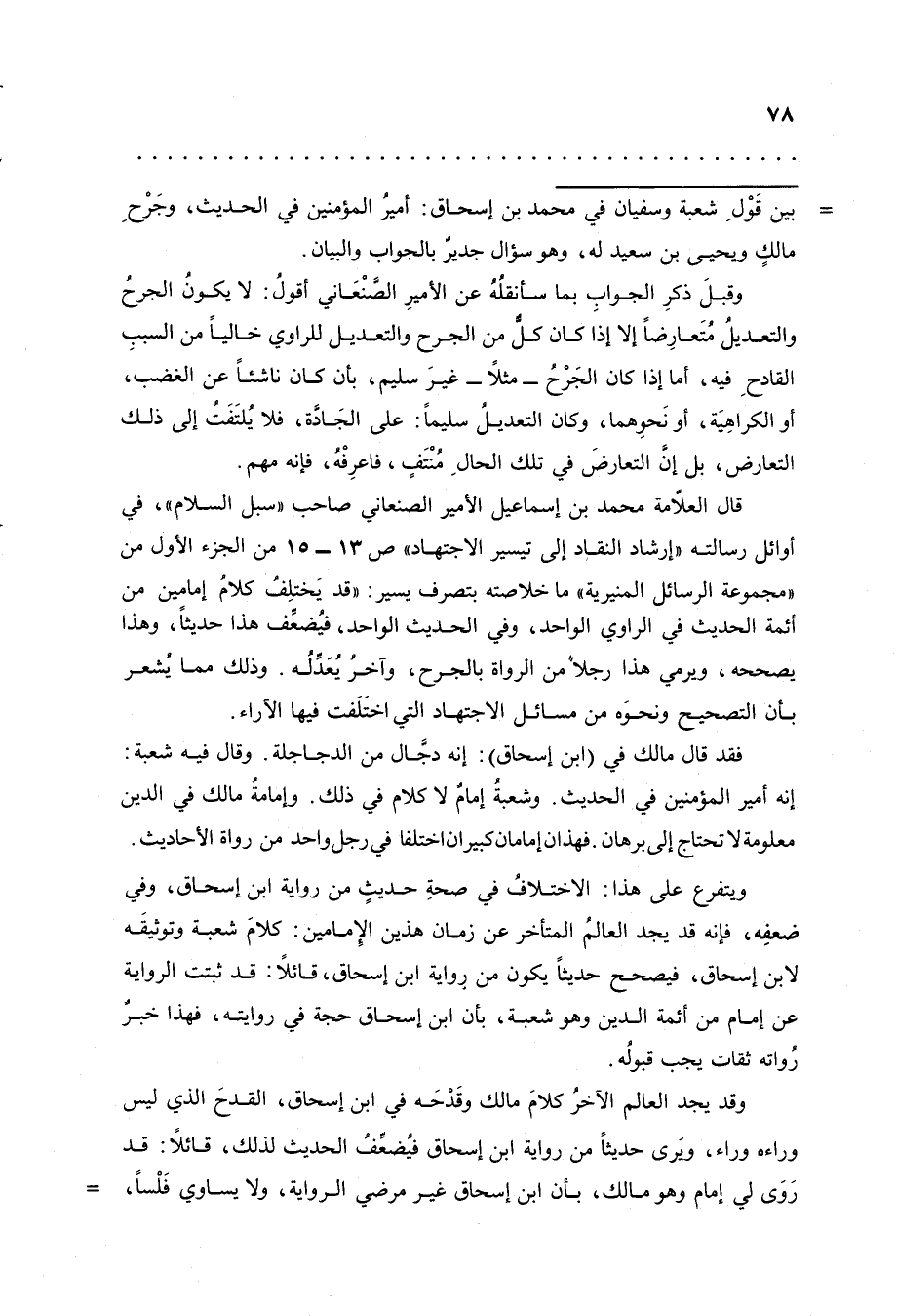 وقبل ذكر الجواب بما سأنقله عن الأمير الصنعاني أقول: لا يكون الجرح