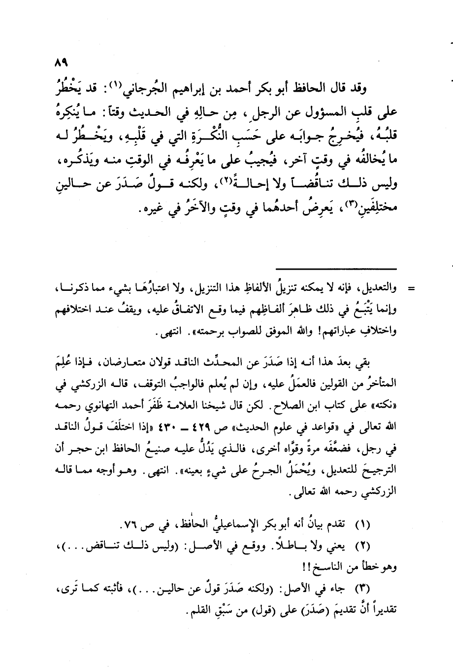 وقد قال الحافظ أبو بكر أحمد بن إبراهيم الجرجاني (ا) : قد يخطر