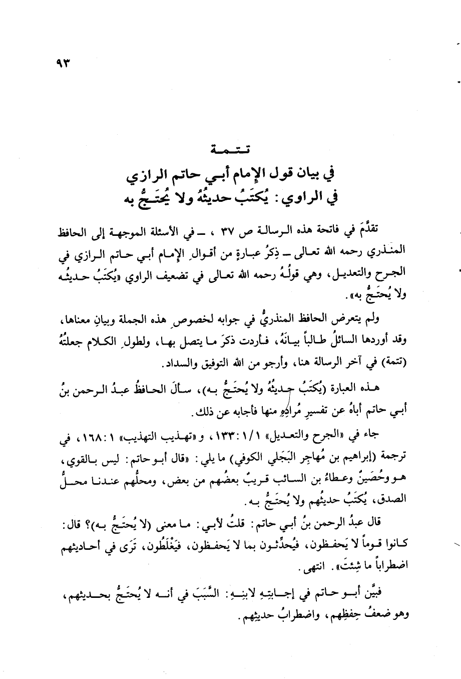 في بيان قول الإمام أبي حاتم الرازي