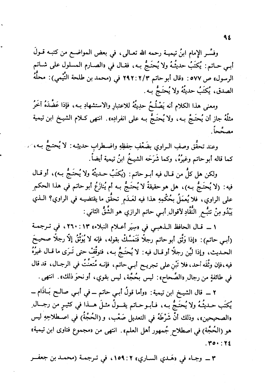 أبي حاتم: يكتب حديثه ولا يحتج به، فقال في "الصارم المسلول على شاتم