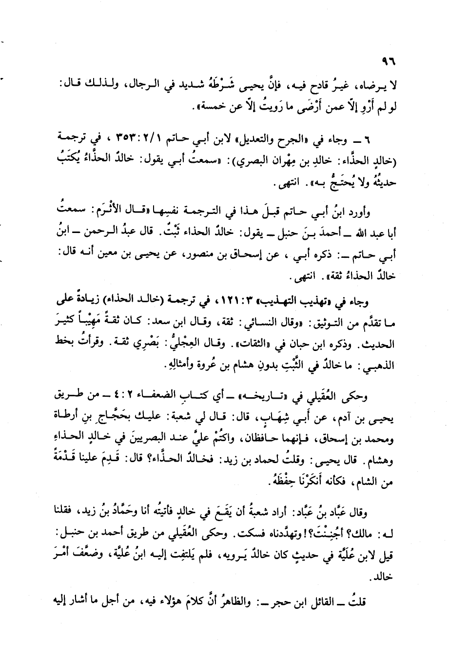 وجاء في "تهذيب التهذيب، 3: 121، في ترجمة (خالد الحذاء) زيادة على