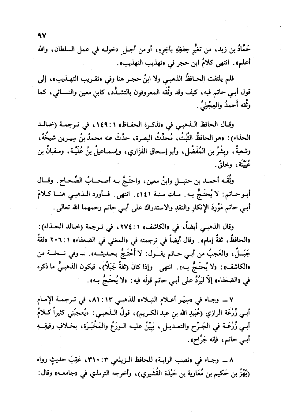 وقال الذهبي أيضا، في "الكاشف "ا: 274، في ترجمة (خالد الحذاء) :